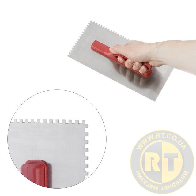 Затирачка призначена для рівномірного нанесення та розподілу штукатурних, шпаклювальних та клейових сумішей по поверхні. Підходить для обробки великих поверхонь.