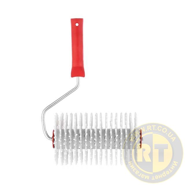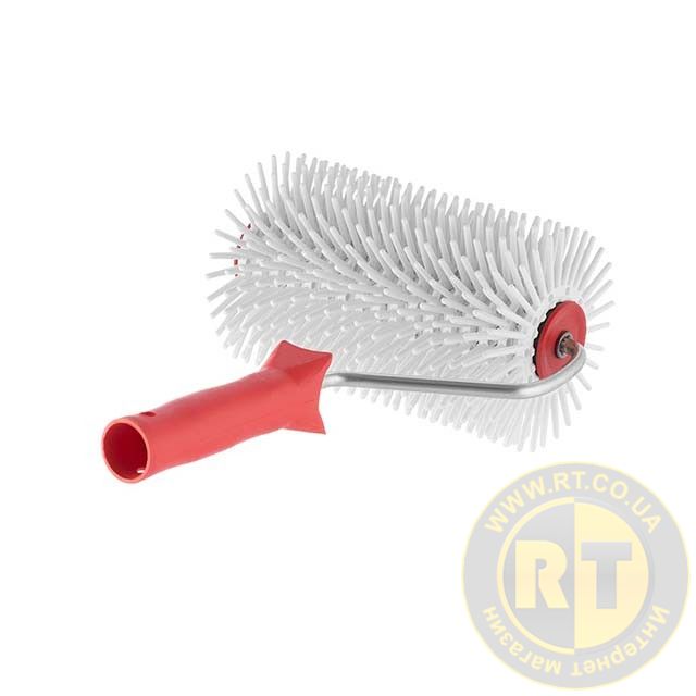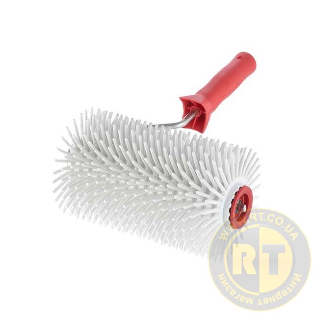 Валик складається з каучукового рухомого ролика з голчастим рельєфом, довжина голки становить 30 мм. Основа виготовлена з міцного металевого стрижня, а ручка - з пластику. Є міцним і зносостійким, після роботи легко очищується від залишків матеріалу.