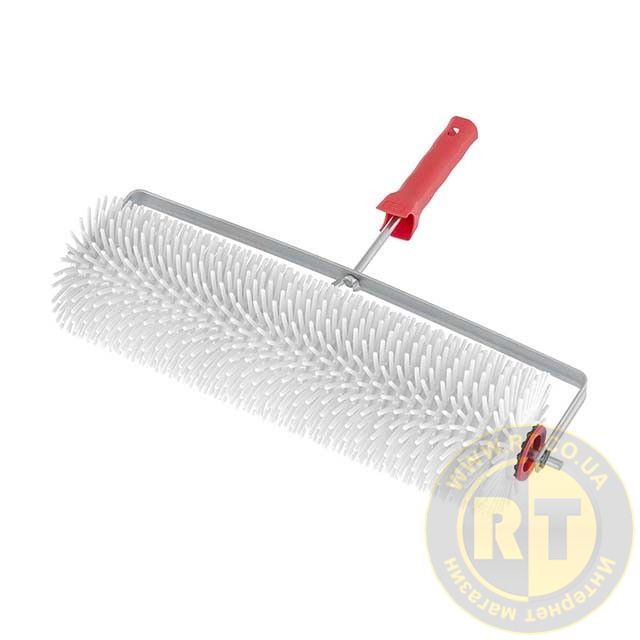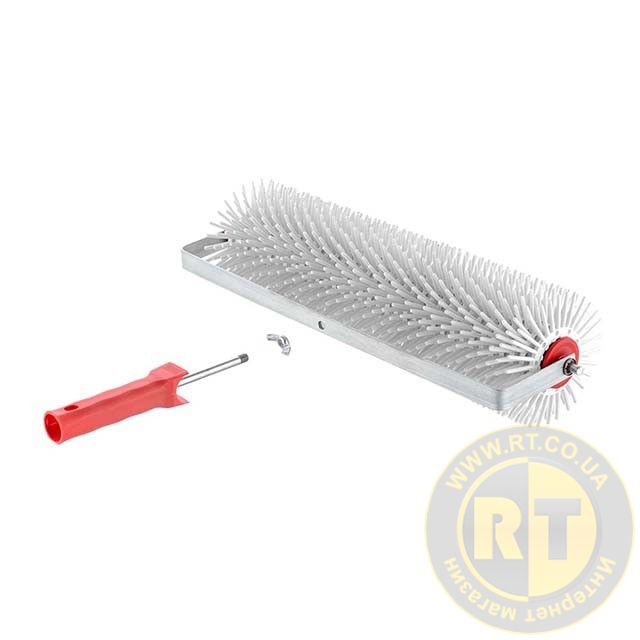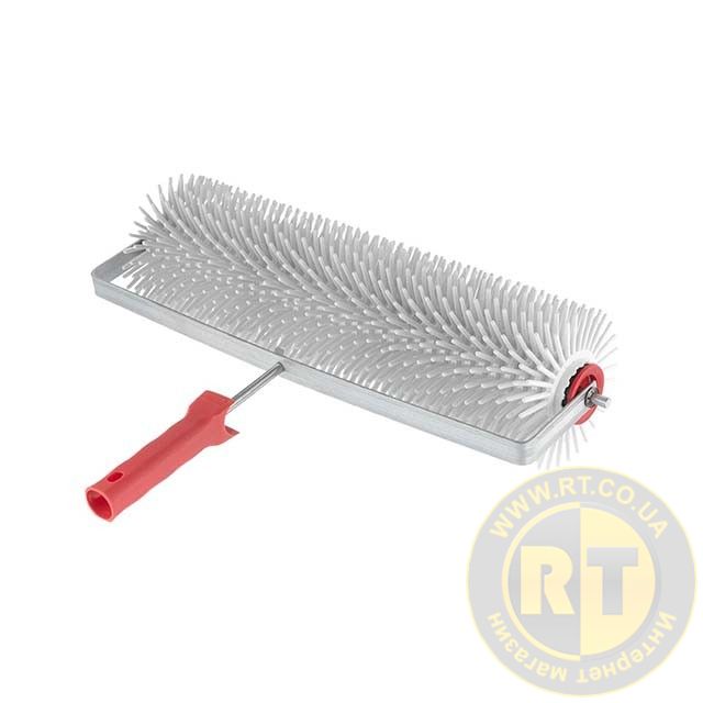 Валик складається з каучукового рухомого ролика з голчастим рельєфом, довжина голки становить 30 мм. Основа виготовлена з міцного металевого стрижня, а ручка - з пластику. Є міцним і зносостійким, після роботи легко очищується від залишків матеріалу.