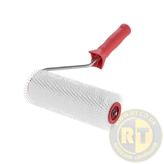 Валик складається з каучукового рухомого ролика з голчастим рельєфом, довжина голки становить 15 мм. Основа виготовлена з міцного металевого стрижня, а ручка - з пластику. Є міцним і зносостійким, після роботи легко очищується від залишків матеріалу.