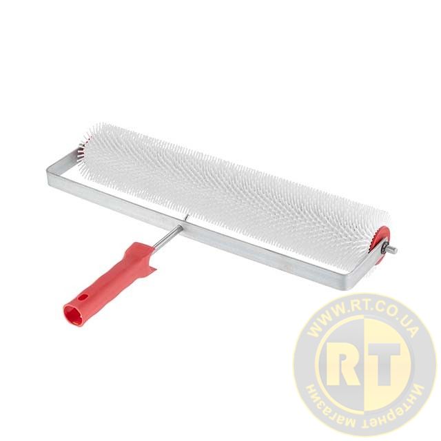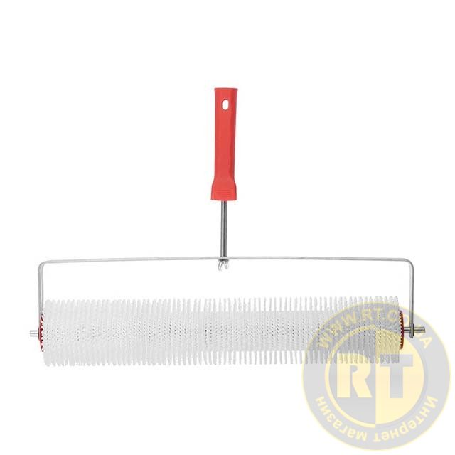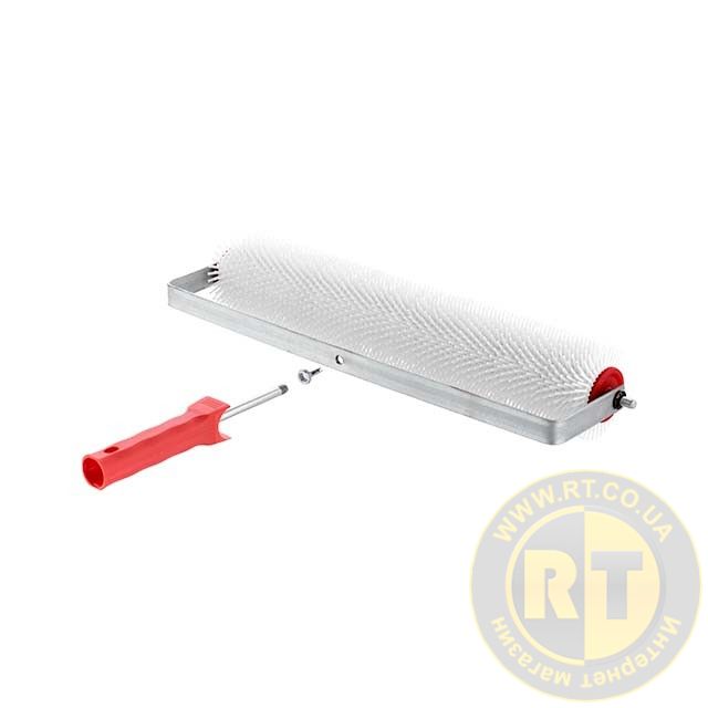 Валик складається з каучукового рухомого ролика з голчастим рельєфом, довжина голки становить 15 мм. Основа виготовлена з міцного металевого стрижня, а ручка - з пластику. Він міцний і зносостійкий, після роботи легко очищується від залишків матеріалу.