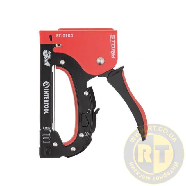 Степлер будівельний 3 в 1, під скобу 11,3×0,7×6-14 мм, цвях 14 мм, шпилька 14 мм, STORM INTERTOOL RT-0104