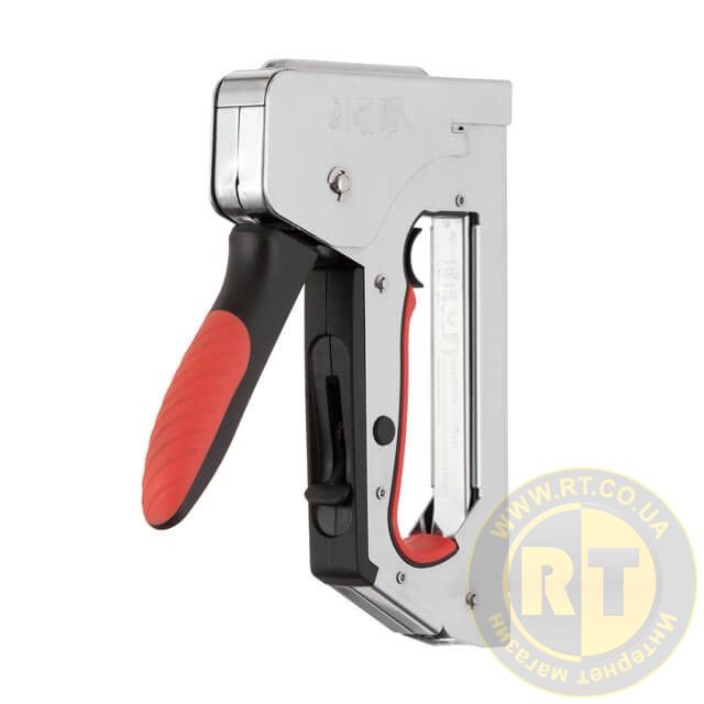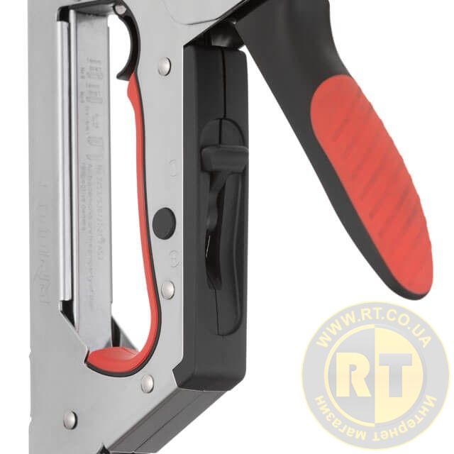 Низька віддача не дозволяє втомлюватися рукам навіть під час тривалих робіт. Прогумована рукоятка відмінно лежить у руці, не ковзає, і забезпечує максимальний комфорт. Міцний металевий корпус вбереже степлер від механічних пошкоджень.