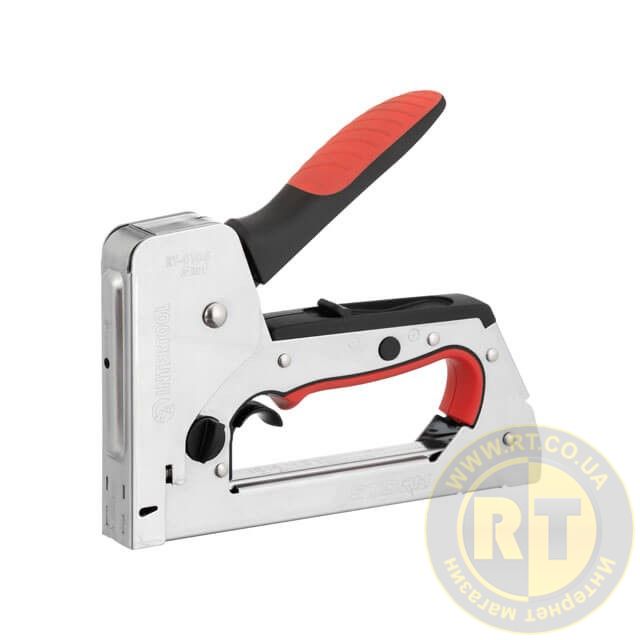 Степлер будівельний 3 в 1 INERTOOL RT-0105 призначений для ремонтних, професійних робіт, зокрема для кріплення різних матеріалів до поверхонь (ДСП, ДВП, фанери, плівки, утеплювача). Застосовується також для швидкого оббивання меблів, обшивання стін пластиком або вагонкою, для кріплення дротів, ковроліну, руберойду тощо. Працює зі скобами від 6 до 14 мм, а також зі шпильками і цвяхами 14 мм.