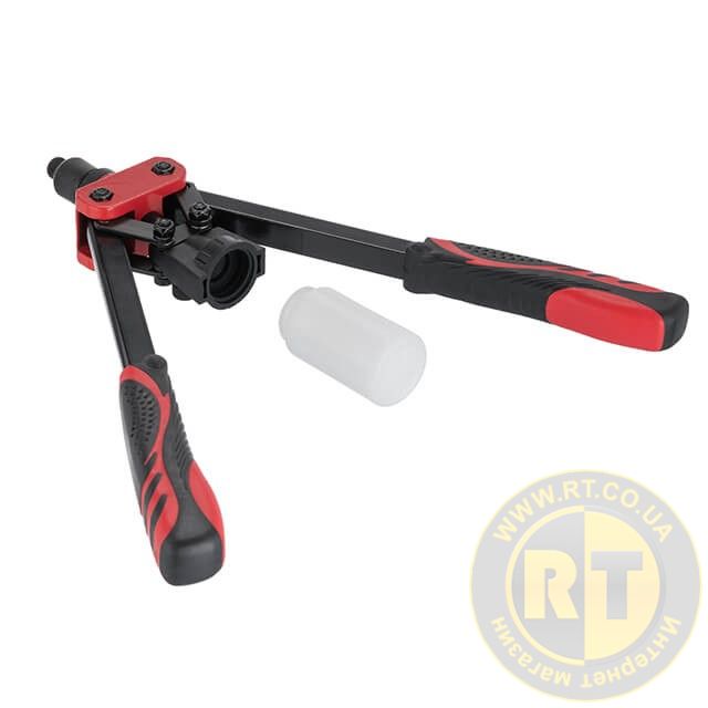 Дворучний заклепник RT-0017 серії STORM призначений для скріплювання будь-яких матеріалів за допомогою витяжних алюмінієвих і сталевих заклепок різних діаметрів (3,2; 4,0; 4,8 мм). Використовується у багатьох сферах діяльності: на будівництві, для ремонту автомобілів і, звичайно ж, у побуті.