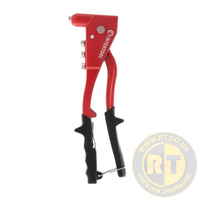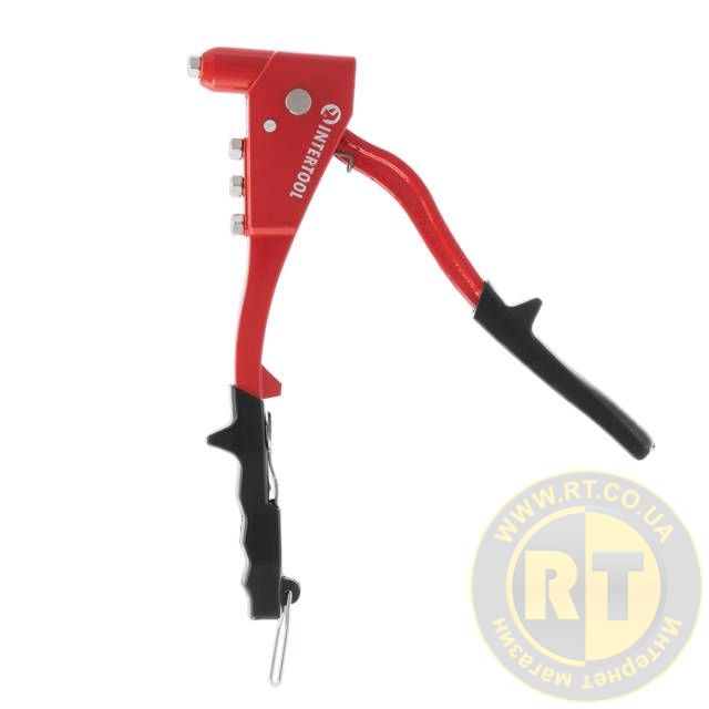 Пістолет заклепувальний, суцільносталевий, діаметр застосовуваної заклепки: 2,4, 3,2, 4,0, 4,8 мм INTERTOOL RT-0010