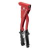 Сталевий штампований важіль, литий корпус - забезпечують надійність інструменту та тривалий строк служби. Пластикові ручки з виступами під пальці запобігають ковзанню. Також ручки оснащені металевою скобою фіксатором для компактного зберігання заклепника.