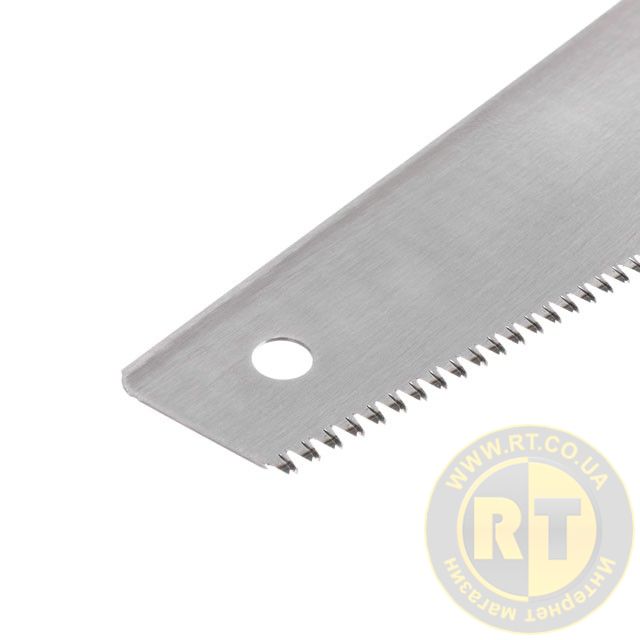 Ножівка по дереву виготовлена із міцної, загартованої сталі, твердістю 55 HRC. Щільне потовщене полотно забезпечує підвищену точність пиляння. Довжина робочої поверхні — 450 мм. Гартовані зубці в кількості 11 зубців x 1 дюйм, мають потрійне заточення та забезпечують швидке різання в обидві сторони - як вперед, так і на себе. Зубці пили загартовані, зберігають гостроту різального краю та не потребують додаткового заточування.