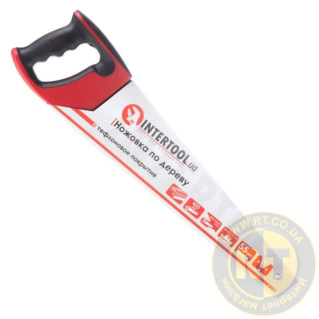 Ножівка по деревині, 450 мм, з тефлоновим покриттям, з гартованим зубом, потрійне заточування, 7 зуб/дюйм INTERTOOL HT-3108