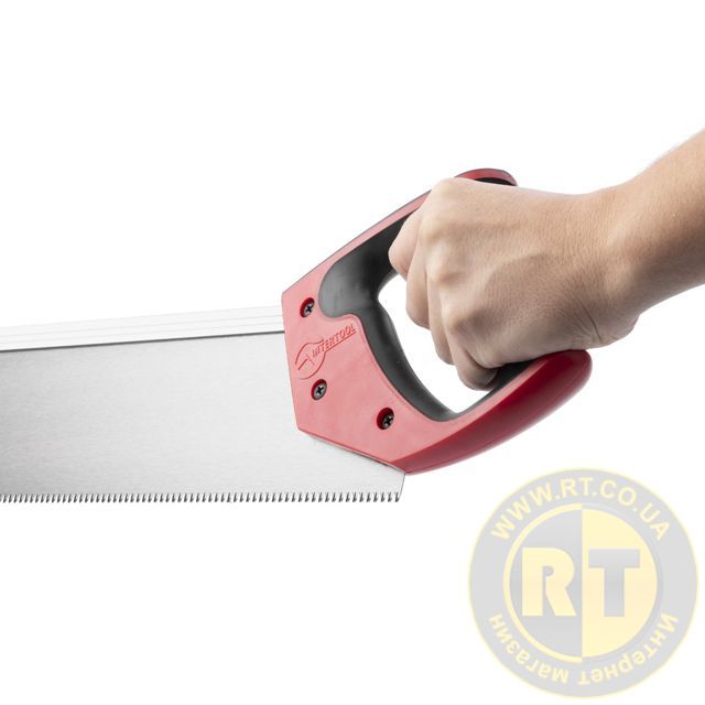 Ергономічна ручка з надміцного пластику дозволяє точно вести ножівку, розпилювання відбувається під час руху полотна «на себе». Ручка має вставки з TPR гуми, що забезпечує відмінну фіксацію інструмента в руці для кращого контролю за робочим процесом.
