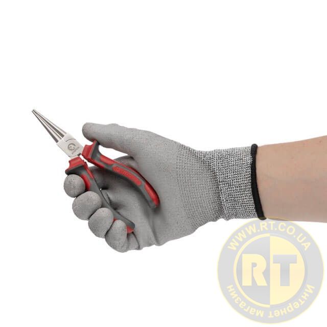 Зручні ручки з двокомпонентним покриттям та мала вага дозволяють комфортно працювати круглогубцями довготривалий час. Продумана форма інструмента та ергономіка вбережуть вас від травмування пальців.