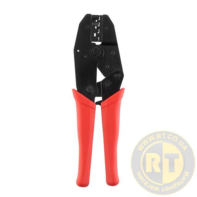 Інструмент з храповим механізмом дозволяє в кілька етапів рівномірно та якісно обтиснути наконечники без докладання особливих зусиль з боку майстра. Регулятор у вигляді шестерні дозволяє вибрати оптимальну силу обтиску. Поворотна пружина з важелем для розблокування храпового механізму.
