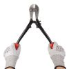 Компактний болторіз має міцну конструкцію з кованої Cr-V сталі, а універсальні різальні леза підходять під будь-які завдання. У складі цієї сталі присутні хром та ванадій, які надають виробу високу стійкість до зносу. Також сталь вирізняється довговічністю та не схильна до крихкого руйнування, вважається найкращою у своєму сегменті. Леза із загартованої сталі забезпечують довготривале заточування та якісний зріз. Порожнисті металеві ручки дозволяють прикладати максимум зусиль та не деформуються під навантаженням.