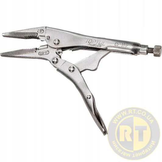 На сьогоднішній час у світі розроблено новаторами та вироблено величезну кількість різноманітного інструментарію для зварних та рихтувальних робіт. У кожного майстра з ремонту у своєму особистому арсеналі має бути інструмент для фіксації різних деталей при різноманітних видах обробки. Для такого виду роботи з деталями необхідно придбати такий інструмент як кліщі з фіксатором. Фіксатор спускового механізму кліщів запобігає випадковому відкриття. Інструменти даного призначення надають величезну різноманітність моделей як професійного, так і призначення користувача. Вибираючи кліщі слід звернути увагу на якість інструменту і матеріал з якого він був виготовлений. Адже інструмент, виготовлений з неякісного матеріалу, швидко приходить у непридатність. У виробництві інструментарію виробництва TOPTUL (Тайвань) використовуються багатокомпонентні марки сталі із застосуванням стійкого до окислення сполук хром-ванадію. Ручка інструменту виготовлена з хроммолібденового сплаву з нікельованим оздобленням та термообробкою. | На нашому сайті Гранд Інструмент ви можете вибрати кліщі, ціна якого відповідає якості. Інструменти TOPTUL відрізняються максимальною надійністю та тривалим терміном служби, а на деякі групи інструментів поширюється навіть довічна гарантія. Придбати інструменти для ваших потреб не складе особливих труднощів, купити кліщі ви можете безготівково, або отримати перевізником після платежу від компанії імпортера марки TOPTUL «Гранд Інструмент» можливо і онлайн у консультанта. Кліщі з фіксатором - це правильний вибір на користь надійності, довговічності, якості та ергономічної функціональності.