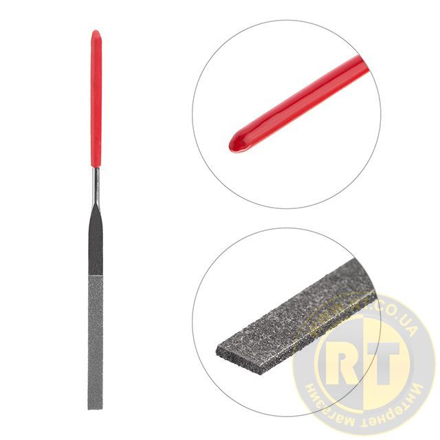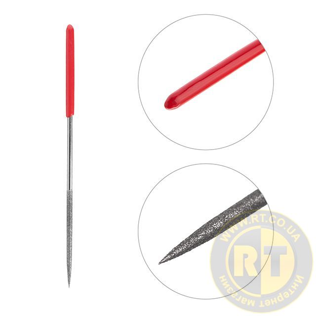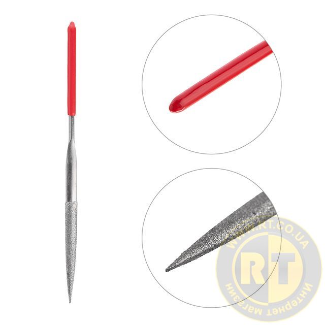 Надфілі виготовлені з високоякісної вуглецевої сталі, що надає високу міцність та зносостійкість. Алмазне напилення гарантує відмінну роботу та високі абразивні властивості. Ручки виконані із легкого пластику.
