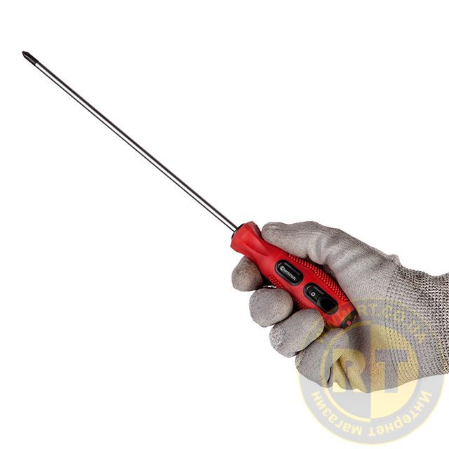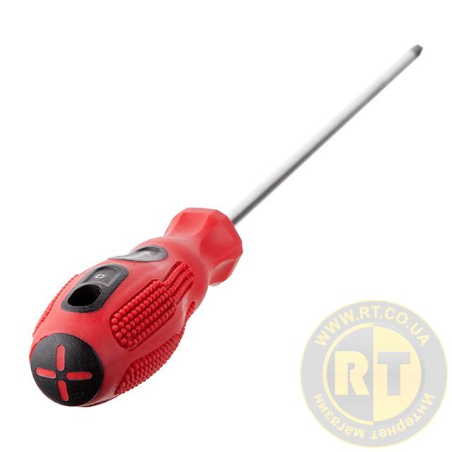 Стрижень викрутки виготовлений з міцної Cr-V сталі, яка відома всім майстрам своєю надійністю та витривалістю. До складу цієї сталі увійшли хром та ванадій, які надають виробу високу стійкість до зносу. Також сталь вирізняється довговічністю, не схильна до крихкого руйнування. Стрижень глибоко посаджений у ручку та кріпитися у двох місцях, що виключає можливість зриву.