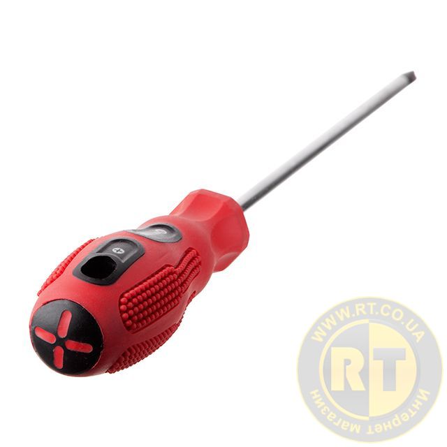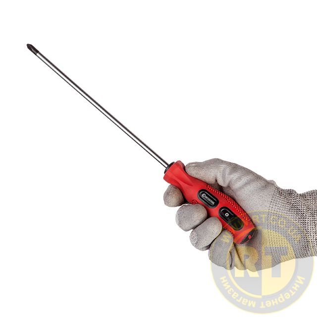 Стрижень викрутки виготовлений з міцної Cr-V сталі, яка відома всім майстрам своєю надійністю та витривалістю. До складу цієї сталі увійшли хром та ванадій, які надають виробу високу стійкість до зносу. Також сталь вирізняється довговічністю, не схильна до крихкого руйнування. Стрижень глибоко посаджений у ручку та кріпитися у двох місцях, що виключає можливість зриву.