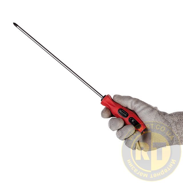 Стрижень викрутки виготовлений з міцної Cr-V сталі, яка відома всім майстрам своєю надійністю та витривалістю. До складу цієї сталі увійшли хром та ванадій, які надають виробу високу стійкість до зносу. Також сталь вирізняється довговічністю, не схильна до крихкого руйнування. Стрижень глибоко посаджений у ручку та кріпитися у двох місцях, що виключає можливість зриву.
