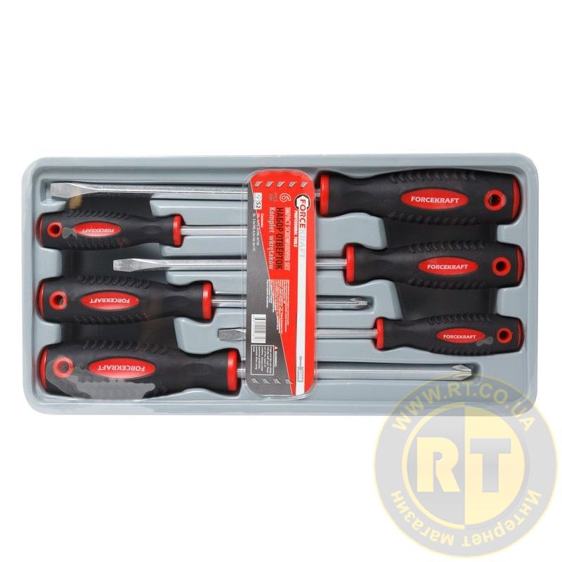 Набір викруток FK-2068 зі сталі S2, з двокомпонентними рукоятками, складається з 6 шт. і призначений для монтажу та демонтажу різьбових з'єднань.