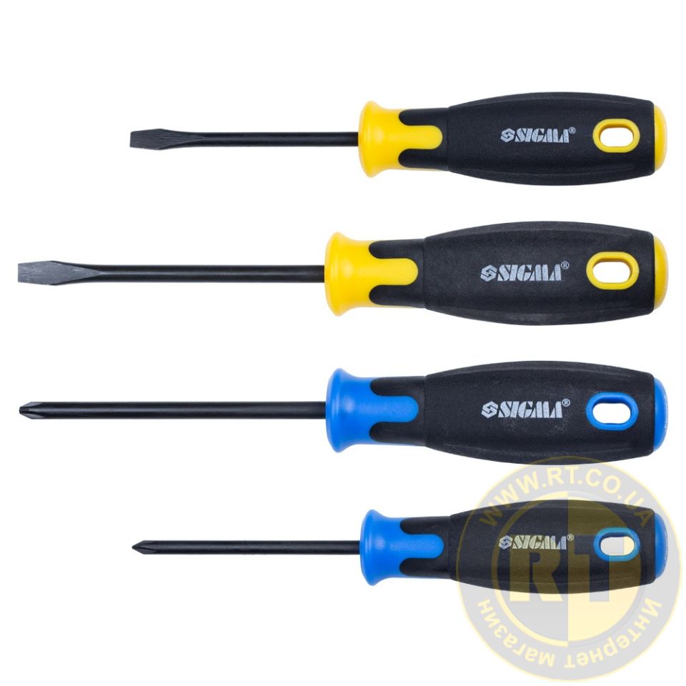 Набір викруток воронених 4шт CrV SIGMA (4007651) - для загвинчування та відгвинчування кріпильних виробів з різьбленням. Ергономічна рукоятка виконана з деревної стружки та полімеру, зручно лежить у руці, не прослизає при закручуванні та має підвищену міцність до механічних впливів.