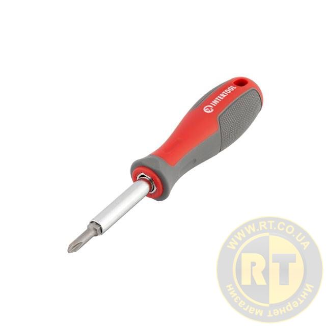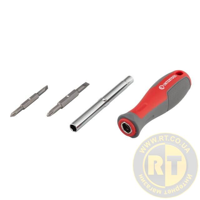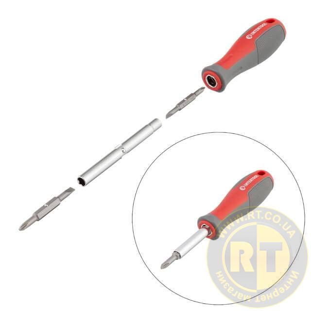Викрутка з двосторонніми змінними насадками, 6 в 1, Cr-V (SL6,35×65 мм, PH1×5 мм, SL8,0×75 мм, PH2×6 мм, внутрішній шестигранник H6, H8) INTERTOOL VT-3341