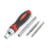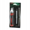 Тріскаткова викрутка 4-в-1 GAAR0402. У своїй комплектації вона має дві двосторонні біти та битоутримувач з реверсною тріскоткою. У виготовленні викрутки використовується високоякісний сплав хром-ванадієвої сталі та оснащений магнітним тримачем. Ручка викрутки складається із двокомпонентного пластику, що сприяє зручній роботі.