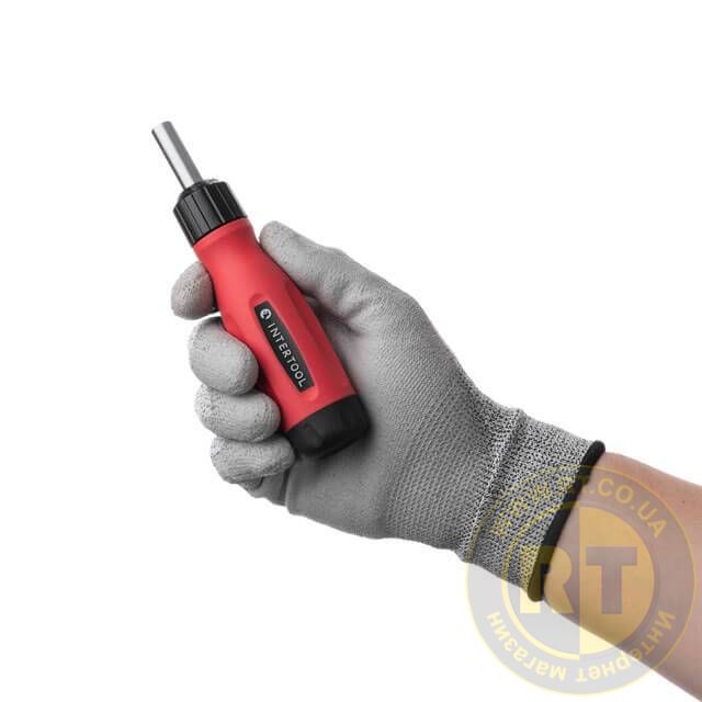 Всередині викрутки встановлено магніт для надійного утримання насадок. Храповий механізм дозволяє працювати в обмеженому просторі та у важкодоступних місцях, де немає місця для маневрів.