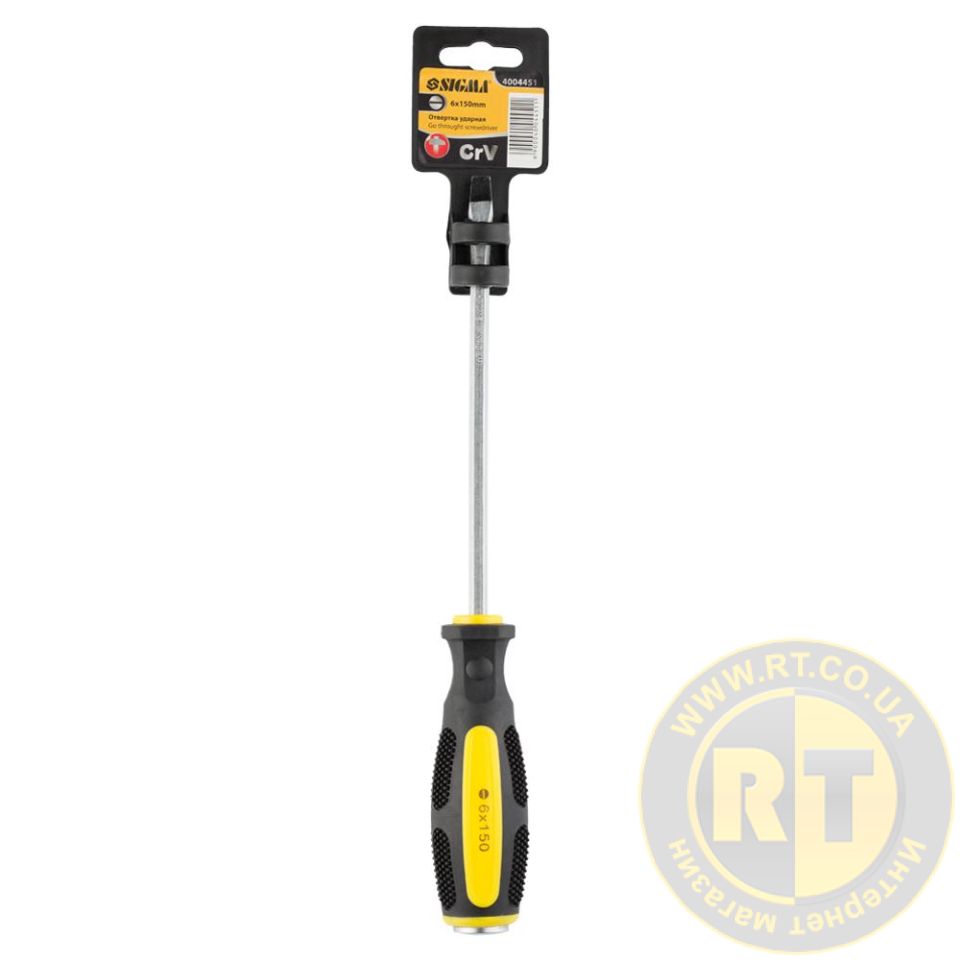 Викрутка ударна шліцьова SL6x150мм CrV Sigma (4004451) на відміну від звичайних викруток, крім основних завдань, пов'язаних із закручуванням та викручуванням кріпильних виробів, дозволяє відкручувати іржаві гвинти та шурупи, за допомогою нанесення ударів по викрутці.