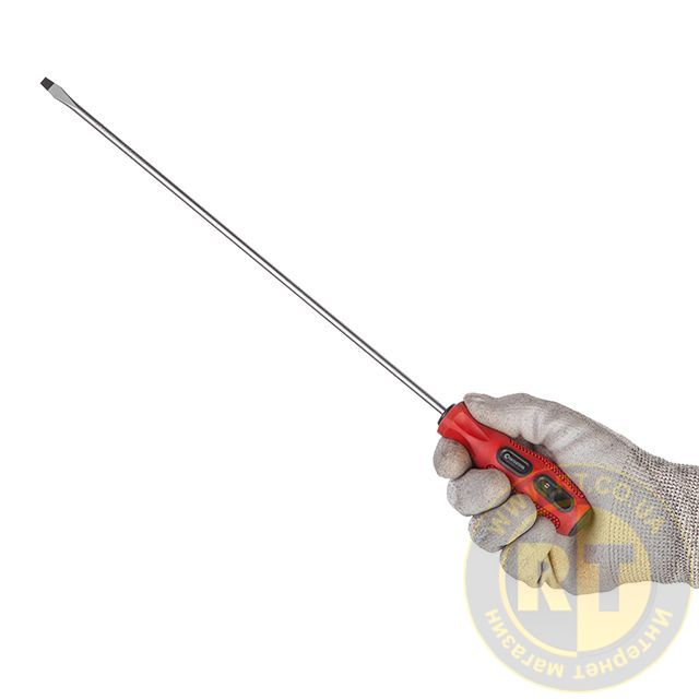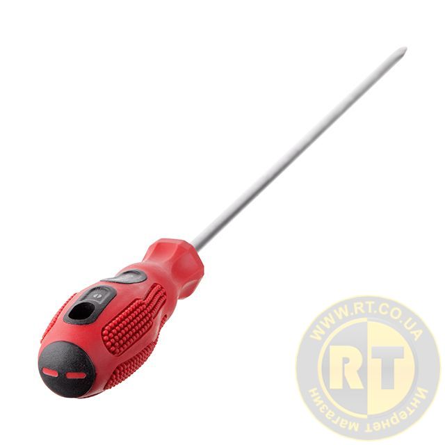 Стрижень викрутки виготовлений з міцної Cr-V сталі, яка відома всім майстрам своєю надійністю та витривалістю. До складу цієї сталі увійшли хром та ванадій, які надають виробу високу стійкість до зносу. Також сталь вирізняється довговічністю, не схильна до крихкого руйнування. Стрижень глибоко посаджений у ручку та кріпитися у двох місцях, що виключає можливість зриву.