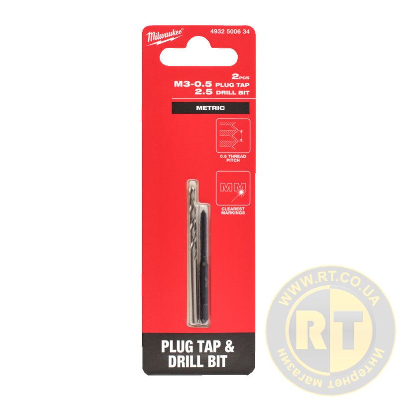 Набір з мітчика ручного MILWAUKEE, М3-0,5мм та свердла по металу Ø2,0мм
