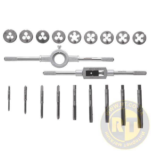 Набір плашок і мітчиків, 20 од., M3-M12 INTERTOOL SD-8021