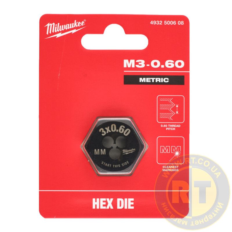 Плашка шестигранна MILWAUKEE, М3-0,6 мм