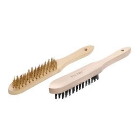 Набір щіток по металу у пластиковому корпусі з прорізом. рук-ми 2 предмети (скребок-75мм; матеріал дроту: вуглець.-я сталь 4х11, латунь 4х16 рядів) в блістері ROCKFORCE RF-340135102