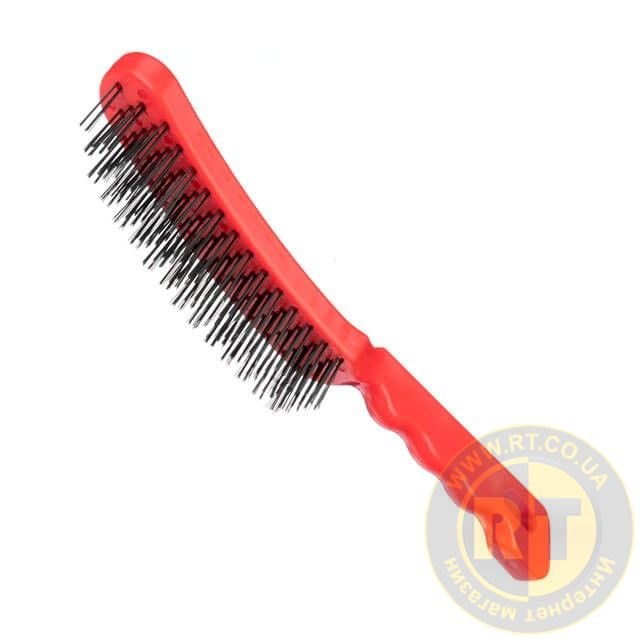 Щітка виготовлена зі сталевого високоякісного дроту, розміщеного в 5 рядів. Ручка виготовлена із пластику, її зручно тримати та керувати процесом зачистки. Закруглена передня частина для доступу до важкодоступних місць.
