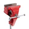 Лещата виготовлені з якісного чавунного сплаву, що забезпечує необхідну міцність. Металевий кріпильний гвинт з упором під фіксацію до поверхні. Покриті лещата стійкою порошковою фарбою проти хімічних, механічних та атмосферних впливів. Загартовані сталеві губки забезпечують надійне захоплення та зносостійкість робочої поверхні.