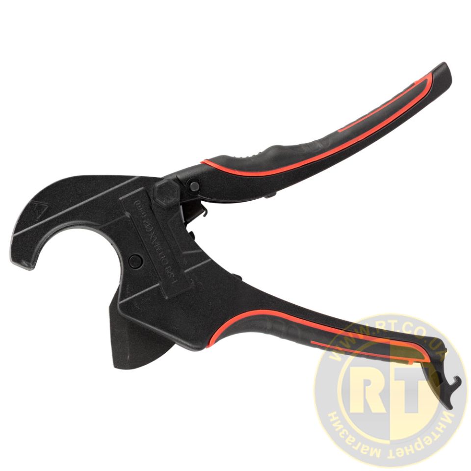 Призначені для різання пластикових труб із поліпропілену (PP), полівінілхлориду (PVC), поліетилену (PE), поліуретану (PU). Надійне лезо з покриттям з політетрафторетилену (PTFE) у поєднанні з храповим механізмом скорочує час роботи та забезпечує оптимальне зусилля при різанні матеріалів. Удосконалена конструкція ножиць мінімізує люфт леза і дозволяє виконувати ідеально рівний зріз, без задирок.