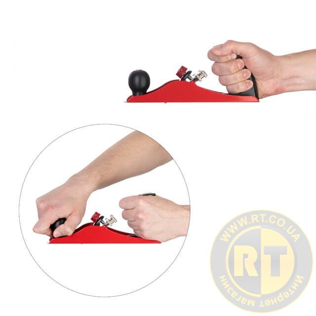 Рубанок має регулювальний гвинт для налаштування глибини стругання. Також оснащений двома ручками зручної форми для надійнішого утримання інструмента в руках.