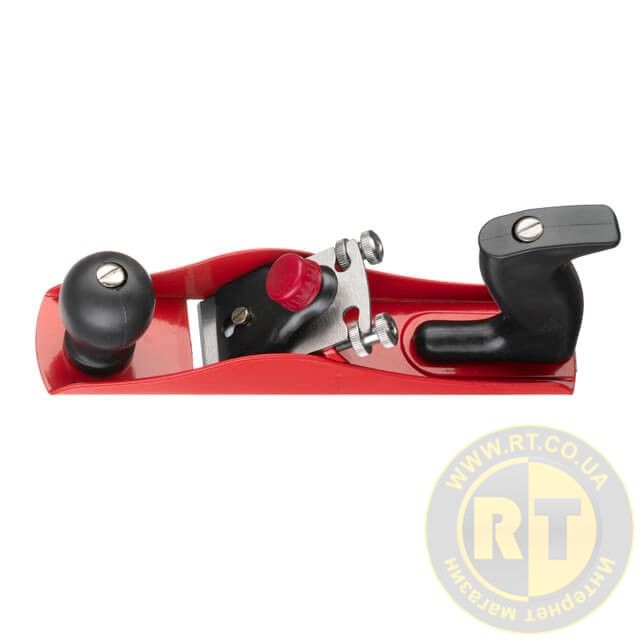 Рубанок має цілісну литу основу, що підвищує точність роботи та усуває вібрацію. Металевий корпус покритий фарбою, інструмент не схильний до деформацій та стійкий до корозії. Лезо з якісної інструментальної сталі забезпечує тривалий строк служби.