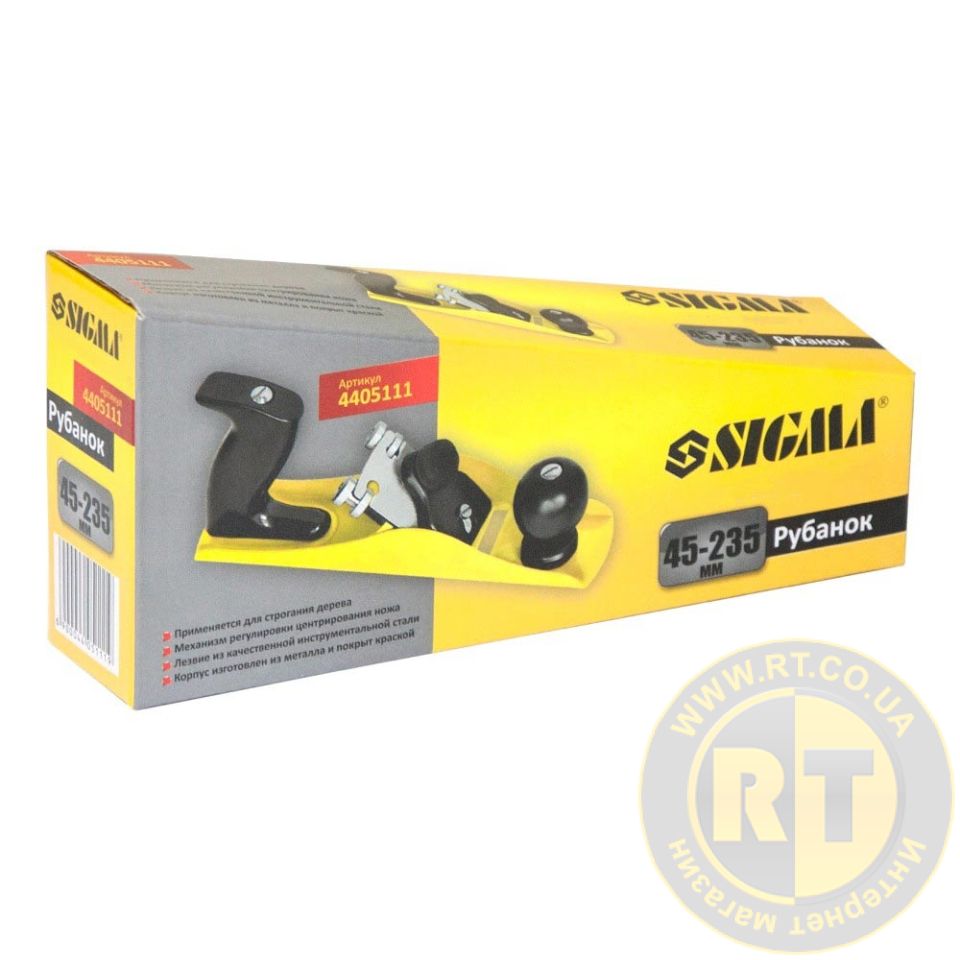 Міцна конструкція металевого корпусу рубанка 235×45мм SIGMA (4405111) пофарбована фарбою, тому не схильна до деформації та корозії. Загартований ніж зі швидкорізальної сталі (твердість 50-60 HRC). Плоский робочої поверхні. Конструкція має механізм автоматичного центрування ножа. Застосовується для стругання дерева.