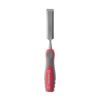 Стамеска виготовлена з якісної загартованої вуглецевої сталі, вона міцна та зносостійка. Металевий наконечник на торці ручки дозволяє завдавати ударів молотком або киянкою та прикладати більше сили для інтенсивнішої вибірки матеріалу. Оптимально заточена різальна крайка дозволяє відразу ж розпочати роботу.