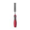Стамеска виготовлена з якісної загартованої вуглецевої сталі, вона міцна та зносостійка. Металевий наконечник на торці ручки дозволяє завдавати ударів молотком або киянкою та прикладати більше сили для інтенсивнішої вибірки матеріалу. Оптимально заточена різальна крайка дозволяє відразу ж розпочати роботу.