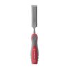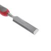 Стамеска виготовлена з якісної загартованої вуглецевої сталі, вона міцна та зносостійка. Металевий наконечник на торці ручки дозволяє завдавати ударів молотком або киянкою та прикладати більше сили для інтенсивнішої вибірки матеріалу. Оптимально заточена різальна крайка дозволяє відразу ж розпочати роботу.