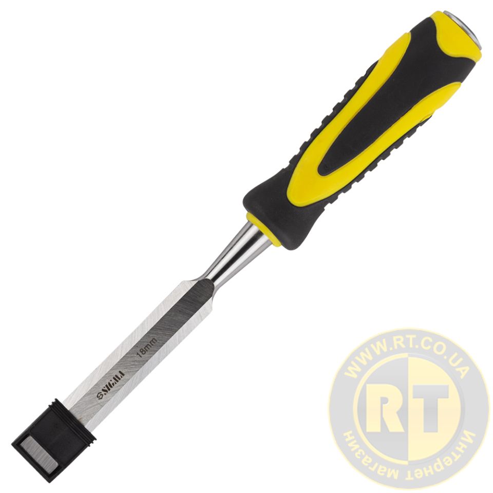Стамеска ударна 18мм двокомпонентна рукоятка CrV SIGMA (4326381) з гумовою ручкою використовується для вибірки гнізд та пазів, вирізування отворів у деревині твердих та м'яких порід з використанням молотка або киянки. Виготовлена з високоякісної хромованадієвої сталі, посилена та ударостійка, що гарантує високий комфорт роботи.