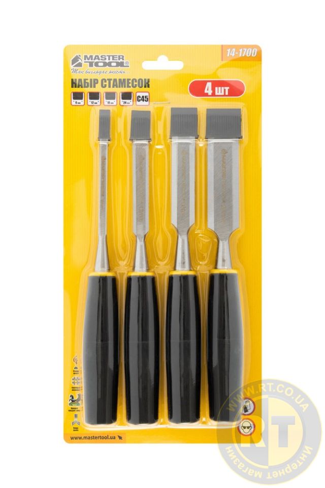 Стамески із пластиковими ручками 6/12/18/24 мм набір 4 шт MASTERTOOL 14-1700