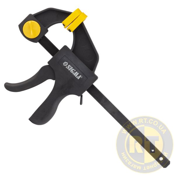 Струбцина швидкозатискна 150×60мм SIGMA (4243211) застосовується для затискання та фіксації різних заготовок та деталей при склеюванні та інших столярних роботах.