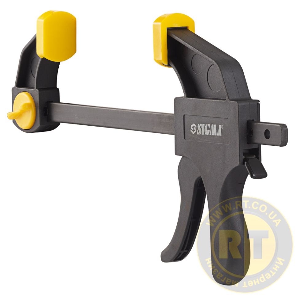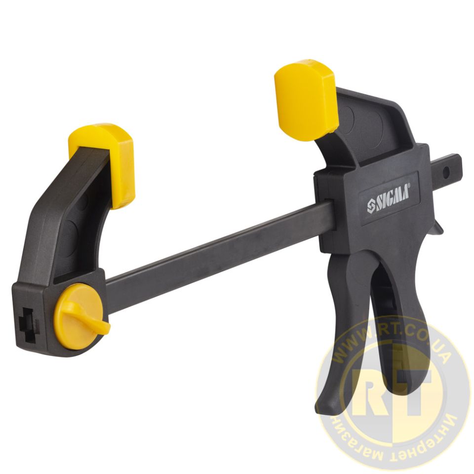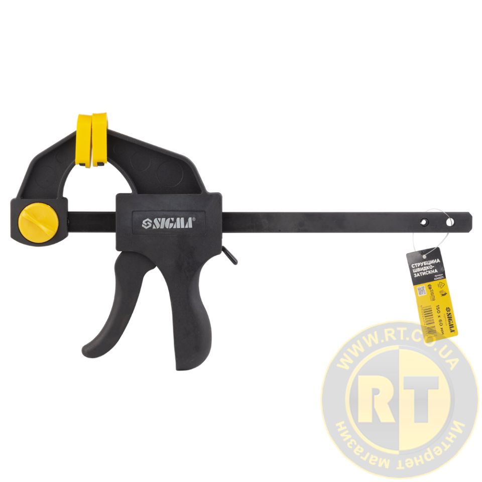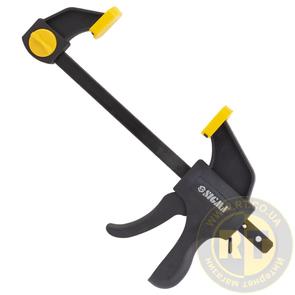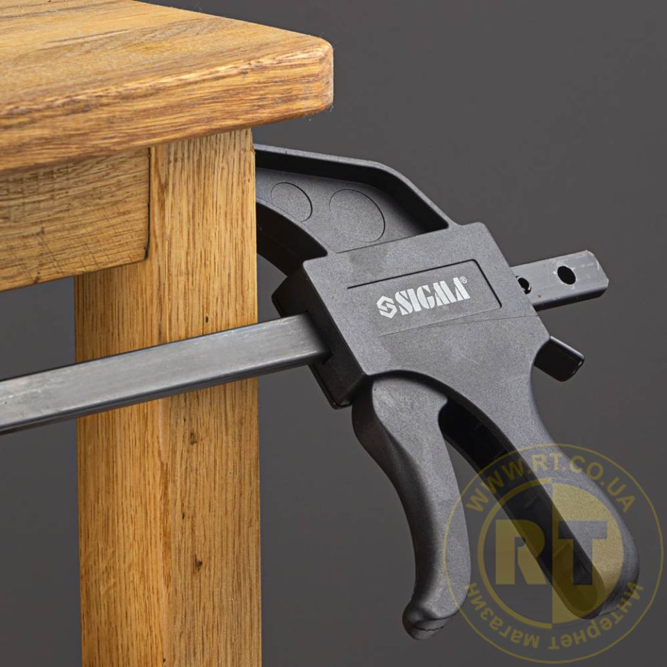 Струбцина швидкозатискна 150×60мм SIGMA (4243211) застосовується для затискання та фіксації різних заготовок та деталей при склеюванні та інших столярних роботах.