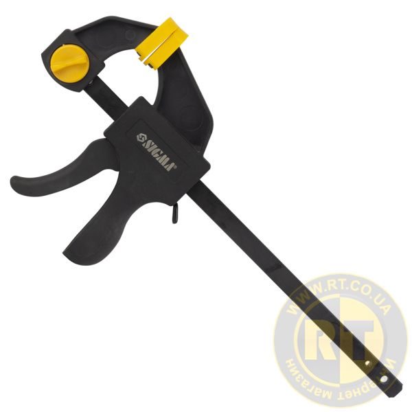Струбцина швидкозатискна 200×60мм SIGMA (4243221) застосовується для затискання та фіксації різних заготовок та деталей при склеюванні та інших столярних роботах.