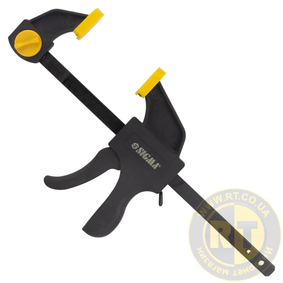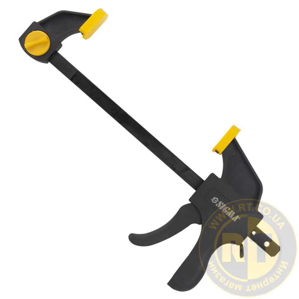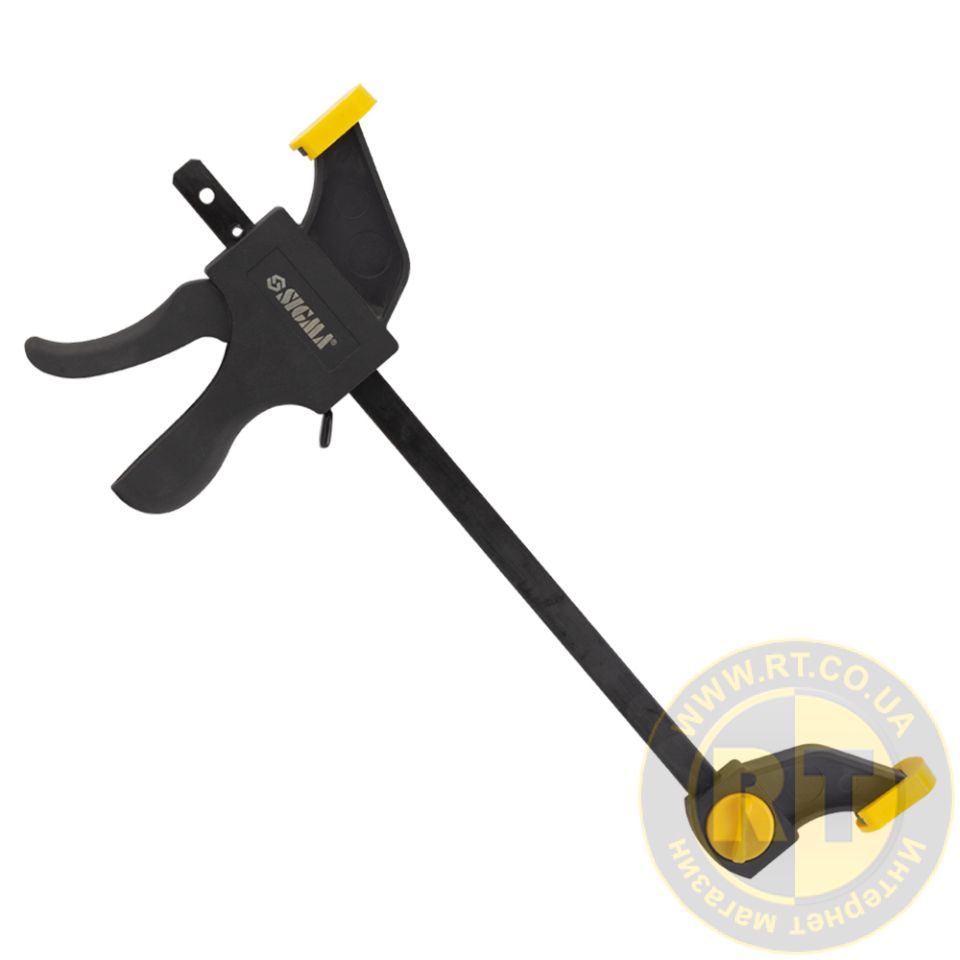 Струбцина швидкозатискна 200×60мм SIGMA (4243221) застосовується для затискання та фіксації різних заготовок та деталей при склеюванні та інших столярних роботах.