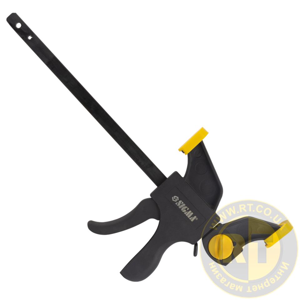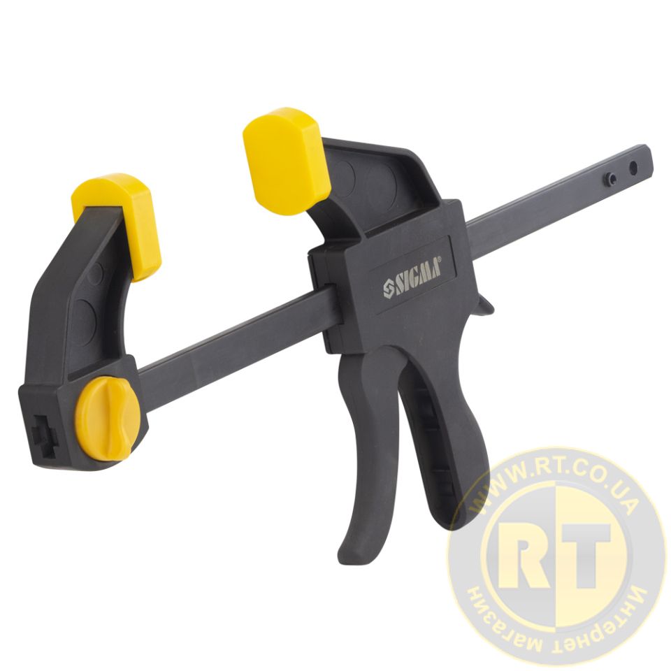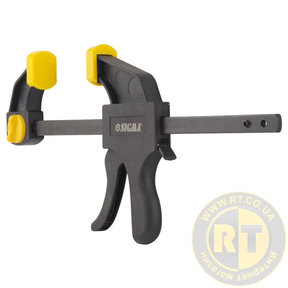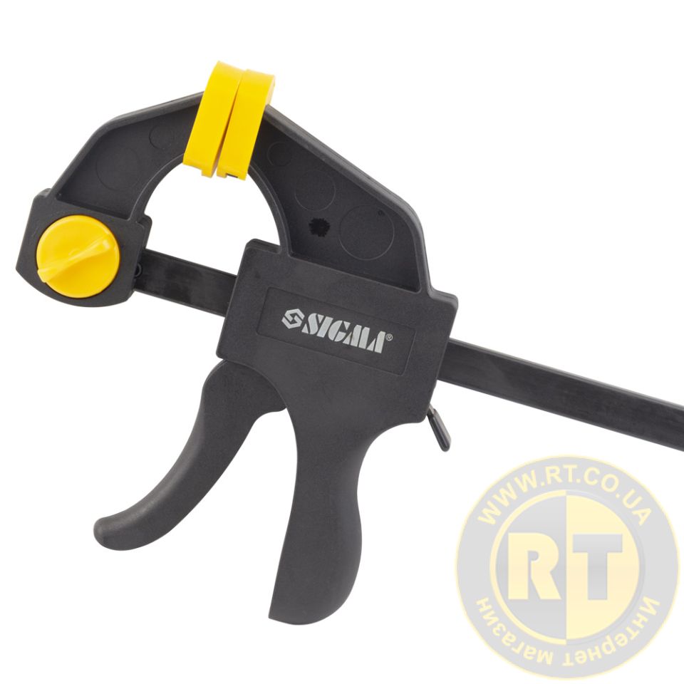Струбцина швидкозатискна 200×60мм SIGMA (4243221) застосовується для затискання та фіксації різних заготовок та деталей при склеюванні та інших столярних роботах.