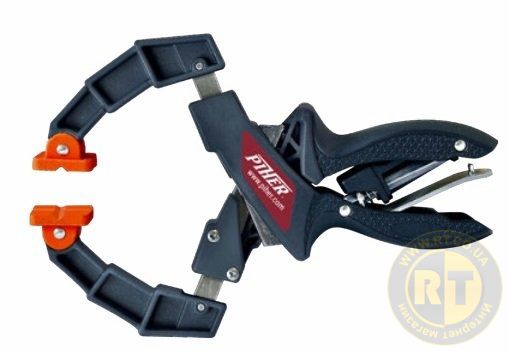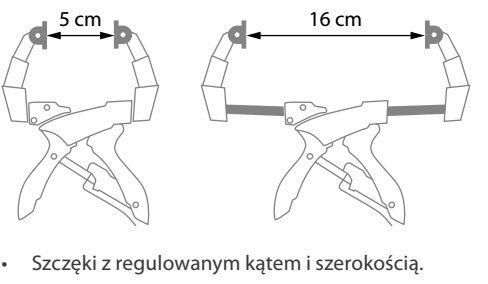 Ступіневий затискувач має можливість регулювання кута та ширини щок. Виготовлений із міцного пластику. Оснащений ергономічним, антиковзаючим захватом, а також зручною системою гальмування ручки одним пальцем.